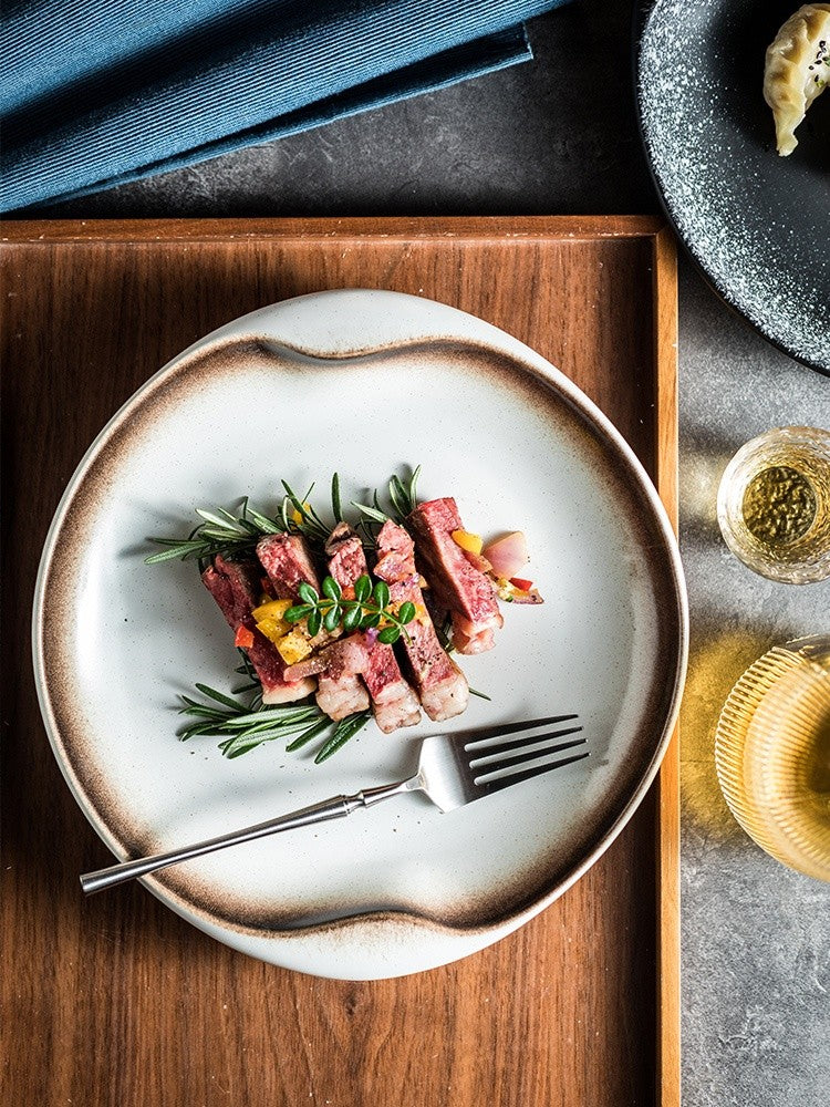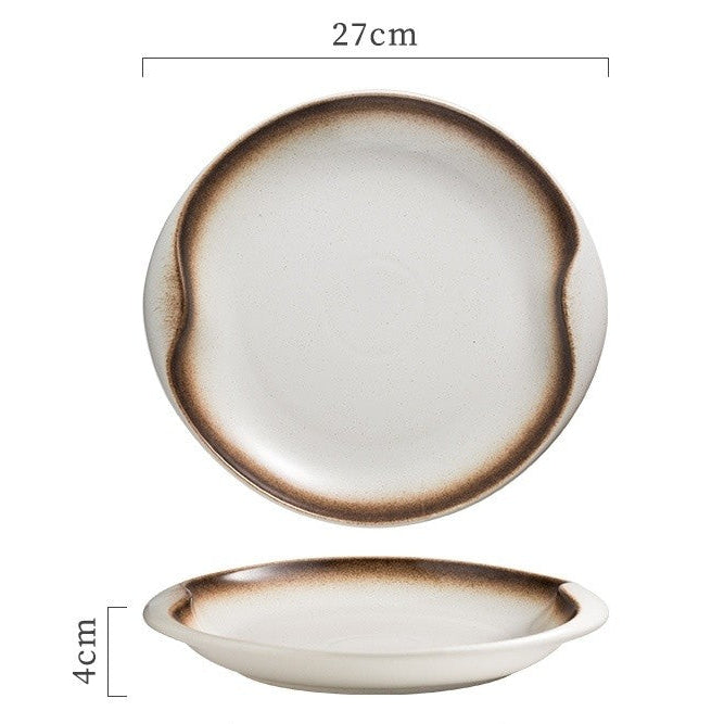 This creative twin-handle plate blends artistic glazing with a bold, modern presence. Its curved handles add charm and practicality, making it easy to serve larger dishes, pastas, salads, or shared meals at the table.